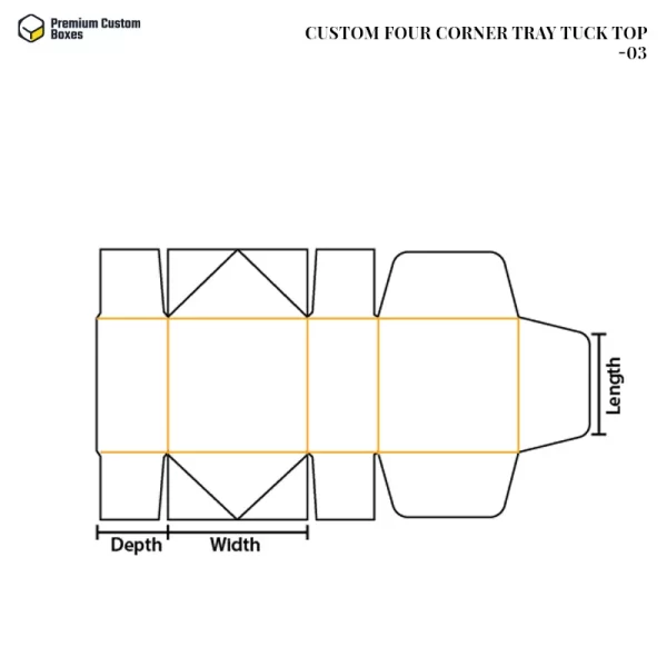 Custom Four Corner Tray Tuck Top is a convenient box that consists of four corners and a tray. It provides ample space for easy opening and closing of the box. But one size box may not always fit the product. We at Premium Custom Boxes understand the need for a variety of box sizes to get a perfect fit for the product. We offer a wide range of customization options to our customers, from the selection of quality materials to choosing the addons you can do it all. Make your brand prominent in the market by printing your brand logos, designs, and images on the boxes, ensuring that customers are attracted to the products that boost brand sales and provide brand recognition.