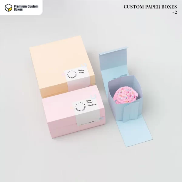 Visit our online services fill in our form and submit via hardcopy or online enjoy free Custom Paper Boxes designed by PCB experts, place your order with minimum of starting 100 custom size Paper Box Packaging with top quality printed boxes providing the mandatory protection to the products inside with elegance and attraction.